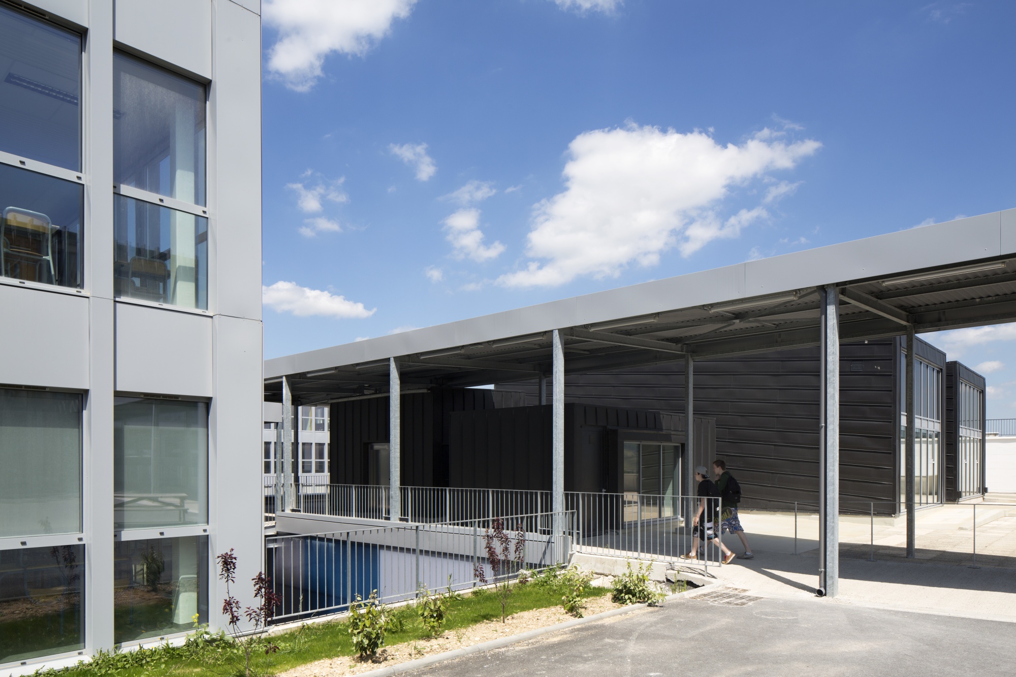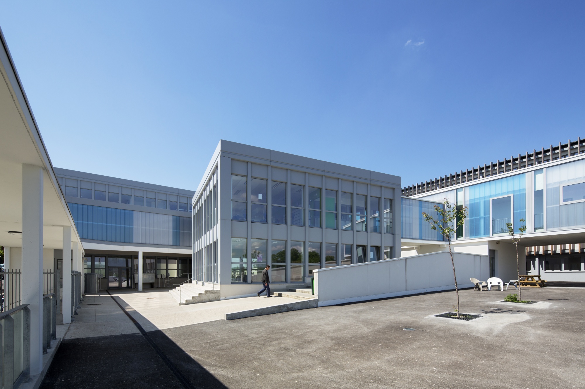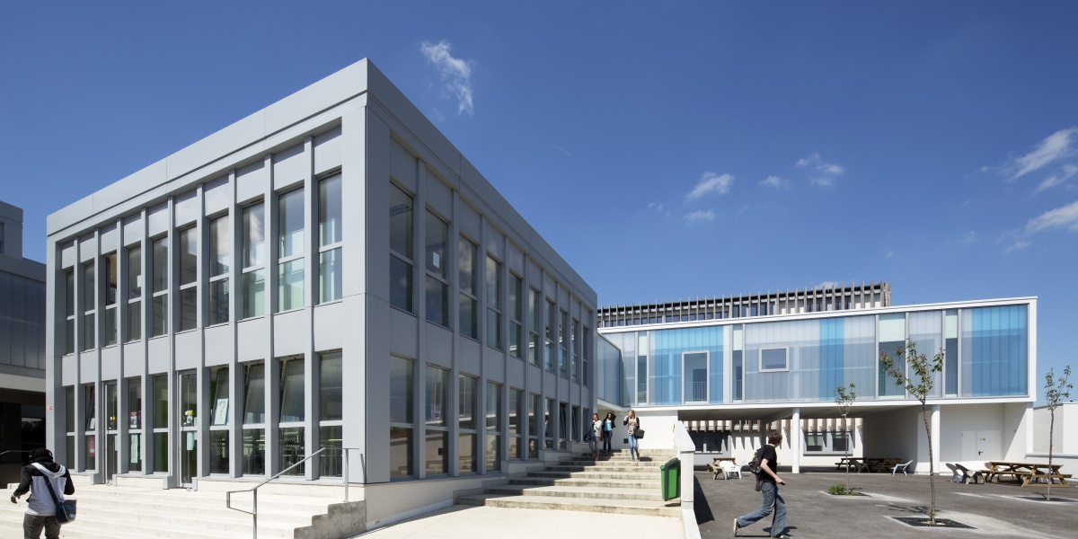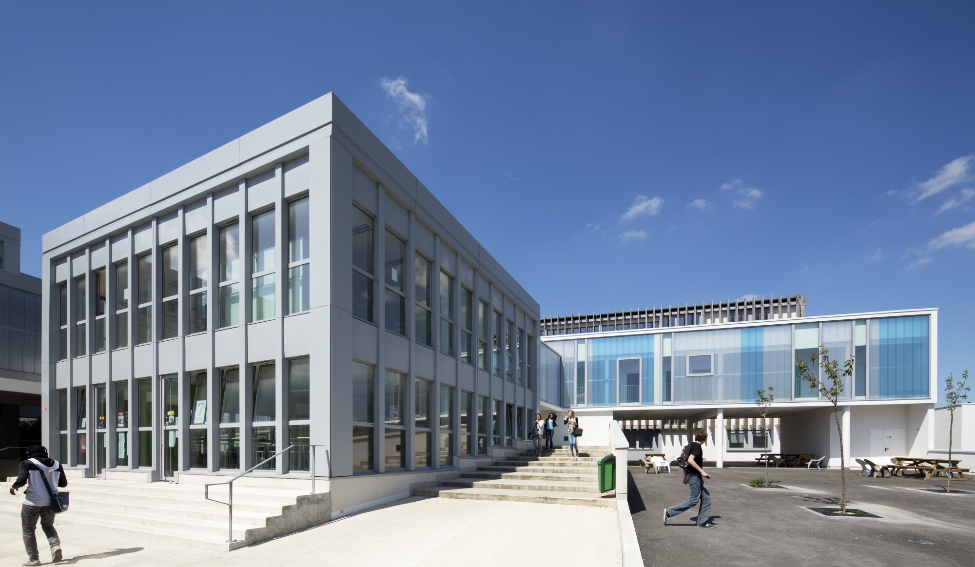 Retrouver une simplicité et une lisibilité fonctionnelle : Conformément aux objectifs de la restructuration, notre travail a porté, dans un premier temps, sur la création d’un pôle à dominante tertiaire sur un site et d’un pôle à dominante industrielle sur l’autre. Ensuite, nous nous sommes efforcés d’identifier un bâtiment, une fonction afin d’assurer la plus grande lisibilité notamment depuis le cheminement de la rue intérieure (ex : un bâtiment pour les BTS, la vie scolaire, le CDI, les locaux des enseignants).