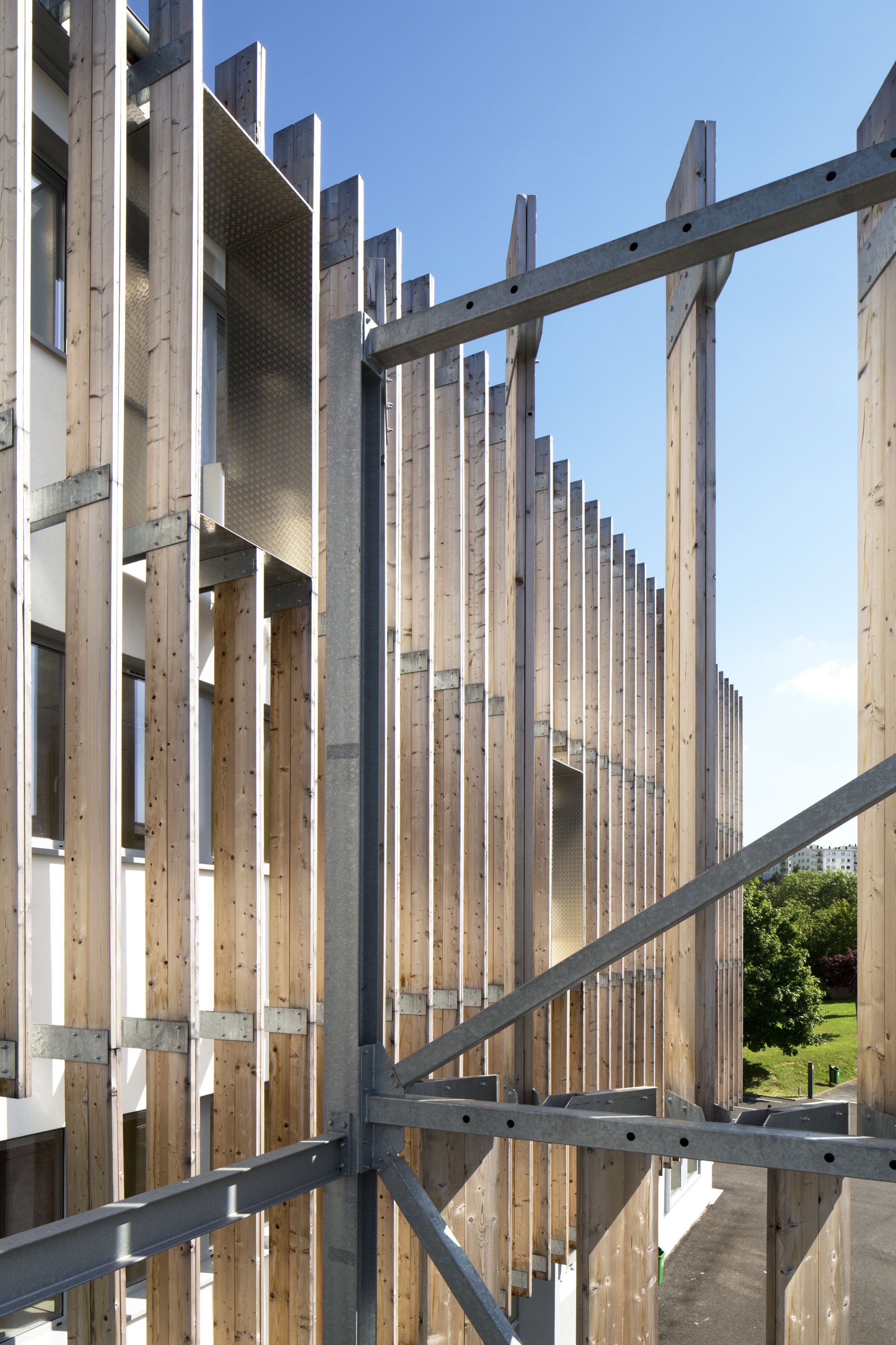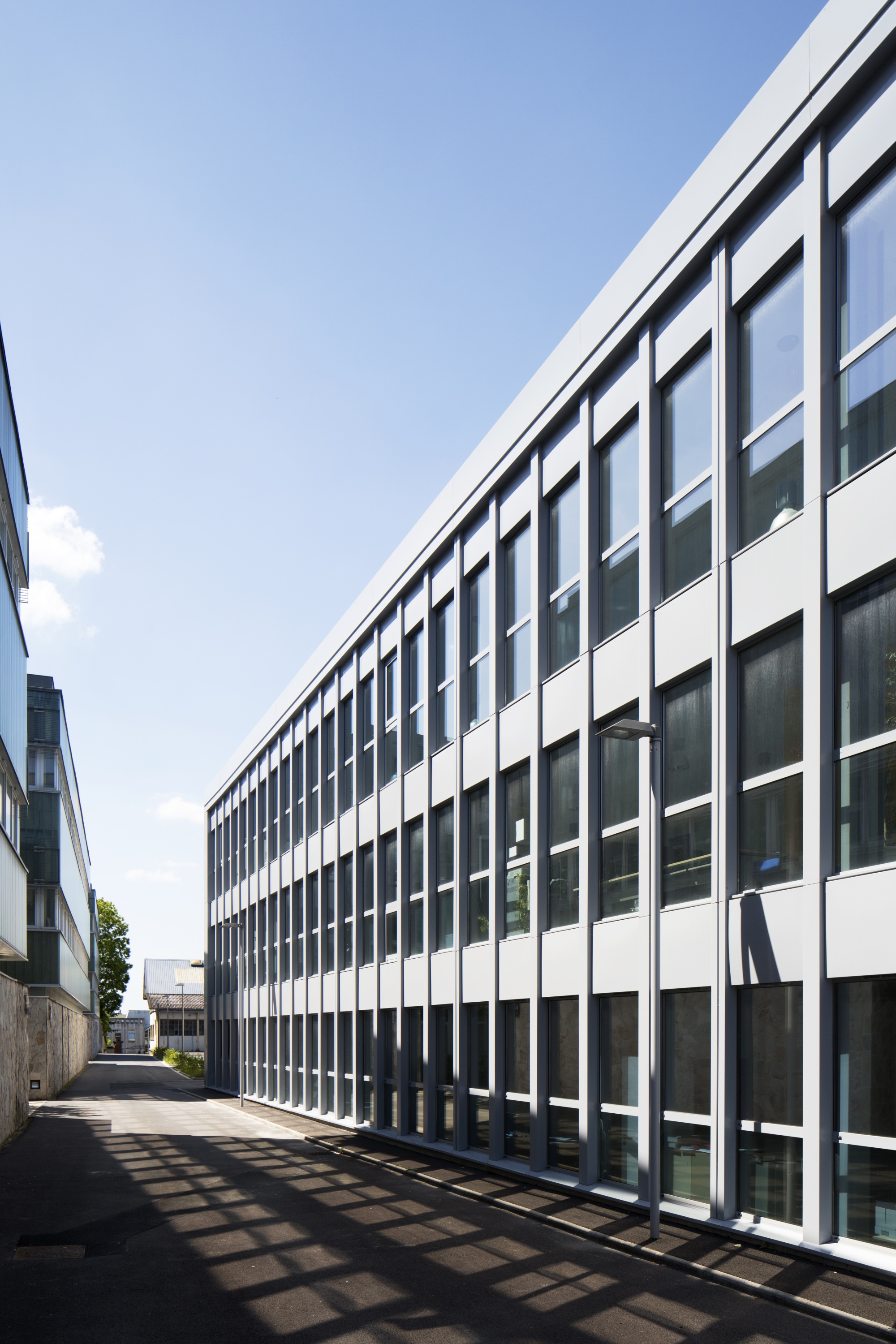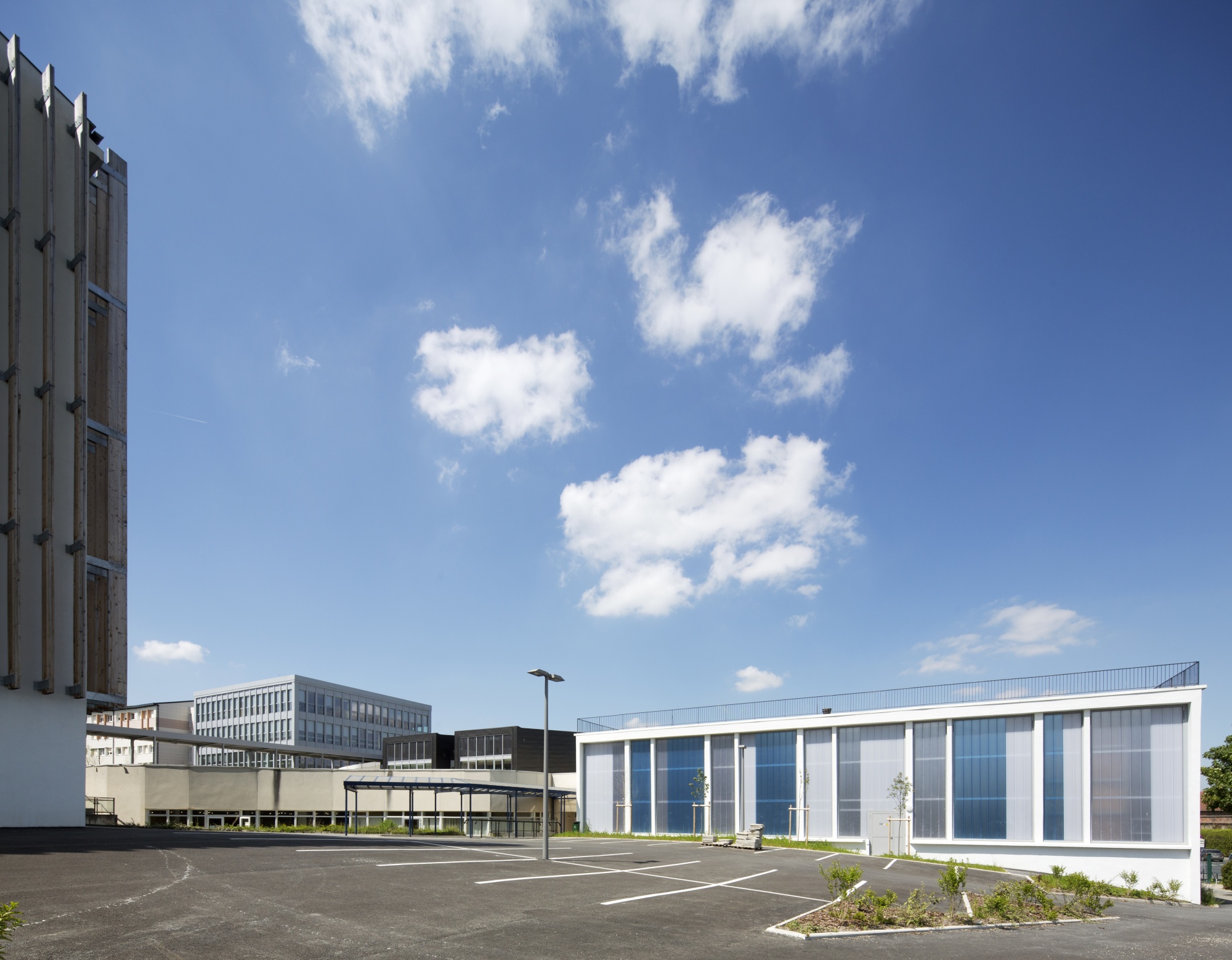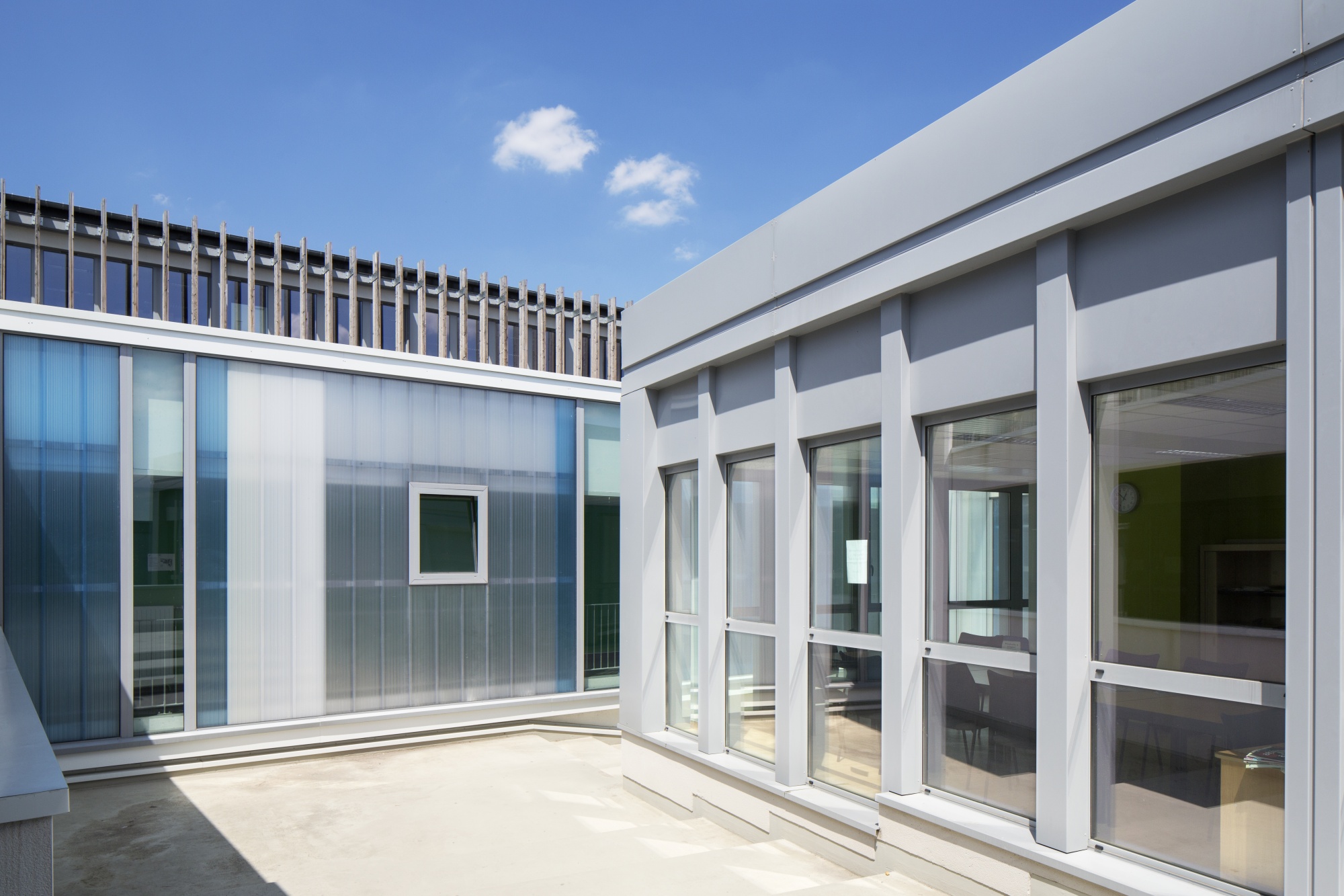 Retrouver une simplicité et une lisibilité fonctionnelle : Conformément aux objectifs de la restructuration, notre travail a porté, dans un premier temps, sur la création d’un pôle à dominante tertiaire sur un site et d’un pôle à dominante industrielle sur l’autre. Ensuite, nous nous sommes efforcés d’identifier un bâtiment, une fonction afin d’assurer la plus grande lisibilité notamment depuis le cheminement de la rue intérieure (ex : un bâtiment pour les BTS, la vie scolaire, le CDI, les locaux des enseignants).