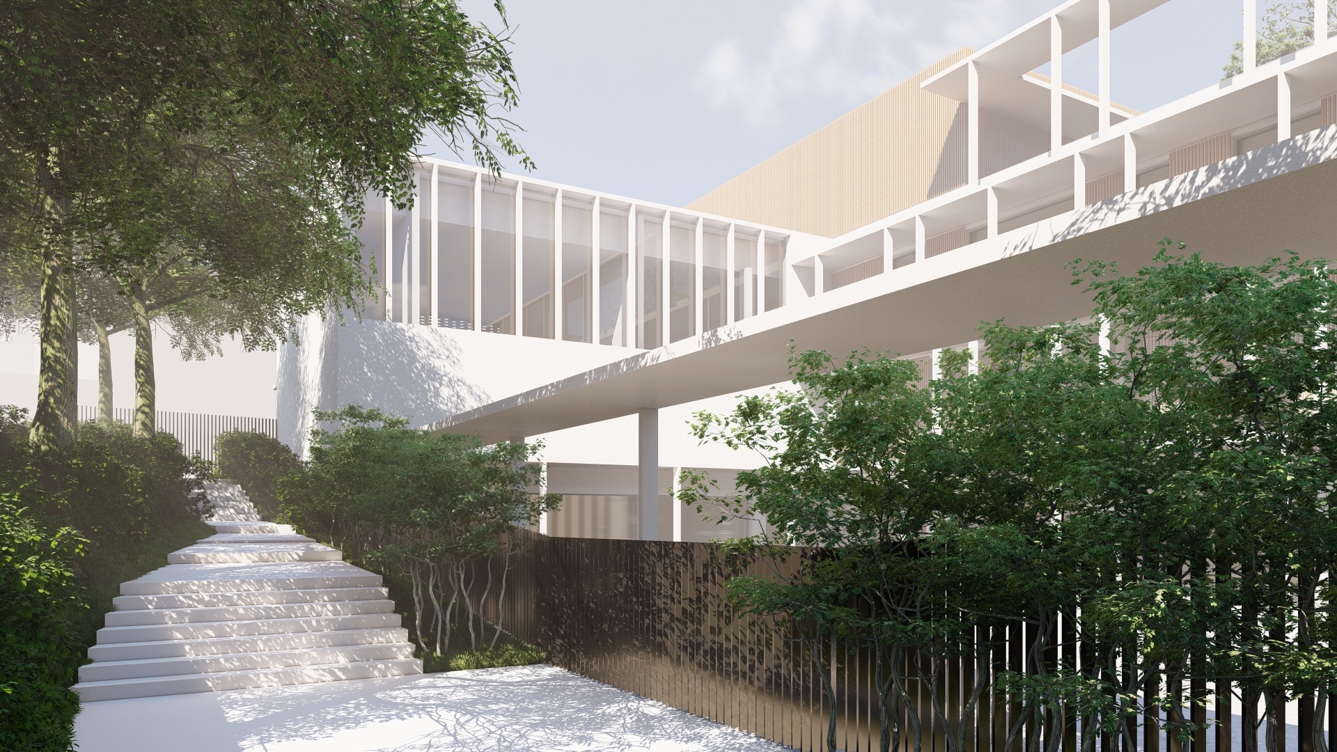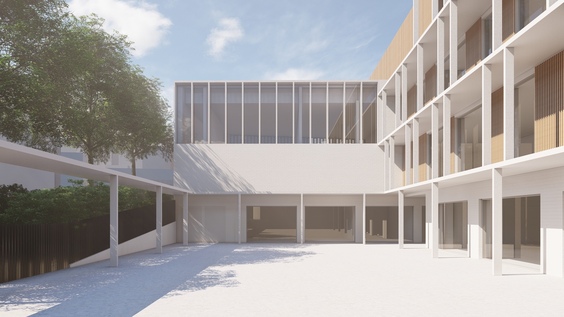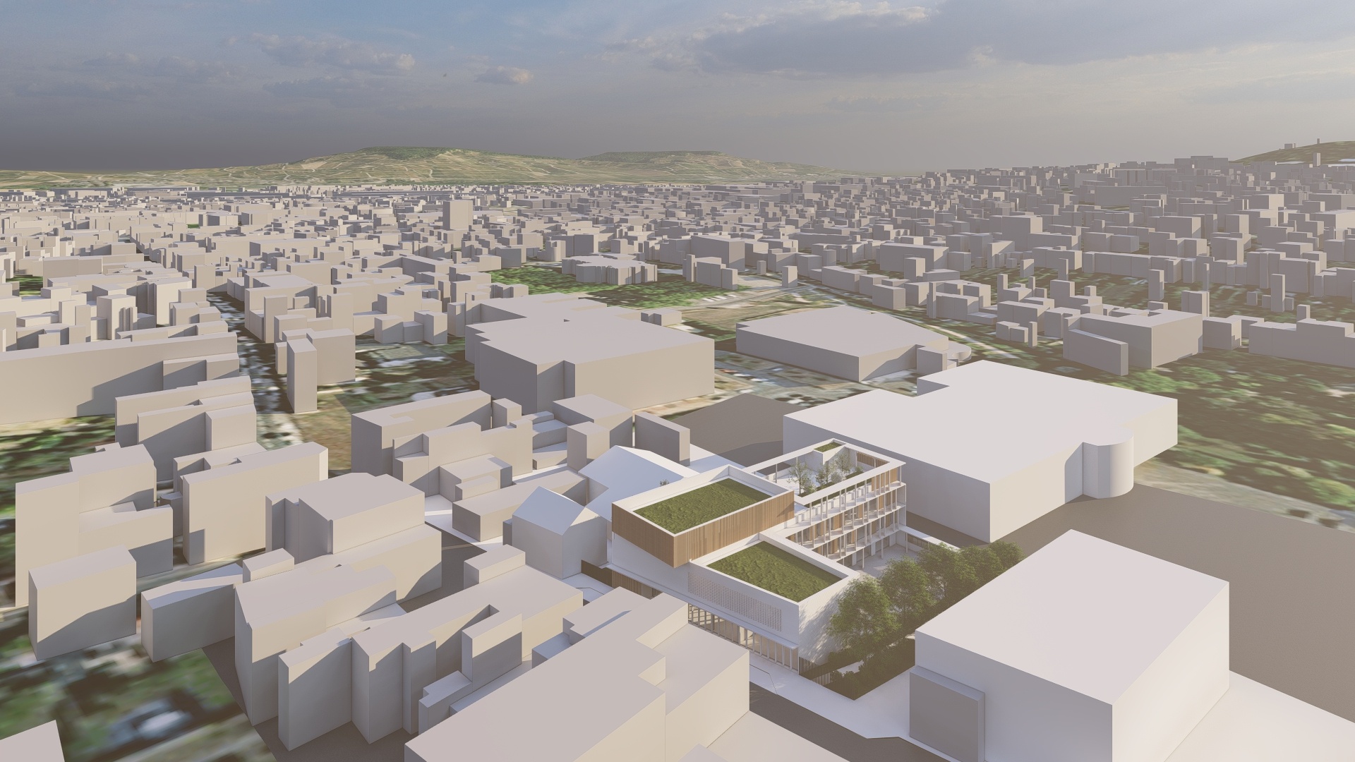 Pour ce faire, nous avons repris la typologie spatiale de toute école depuis la nuit des temps, c’est-à-dire un bâtiment autour d’une cour de récréation et dans notre cas du fait des différences de niveaux entre les deux rues, aussi une cour de desserte pour les enfants amenés par l’association. L’inclusion passe aussi par la construction d’un bâtiment rentrant dans son bilan carbone, dans les matériaux biosourcés, la gestion de l’énergie qui devrait être exemplaire.