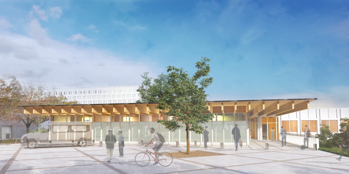La programmation est un complément de l’activité usuelle. La création d’une nouvelle façade d’entrée valorise l’architecture de la construction existante et invite les patients à accéder dans ce service via une passerelle qui conduit directement vers le nouvel accueil.