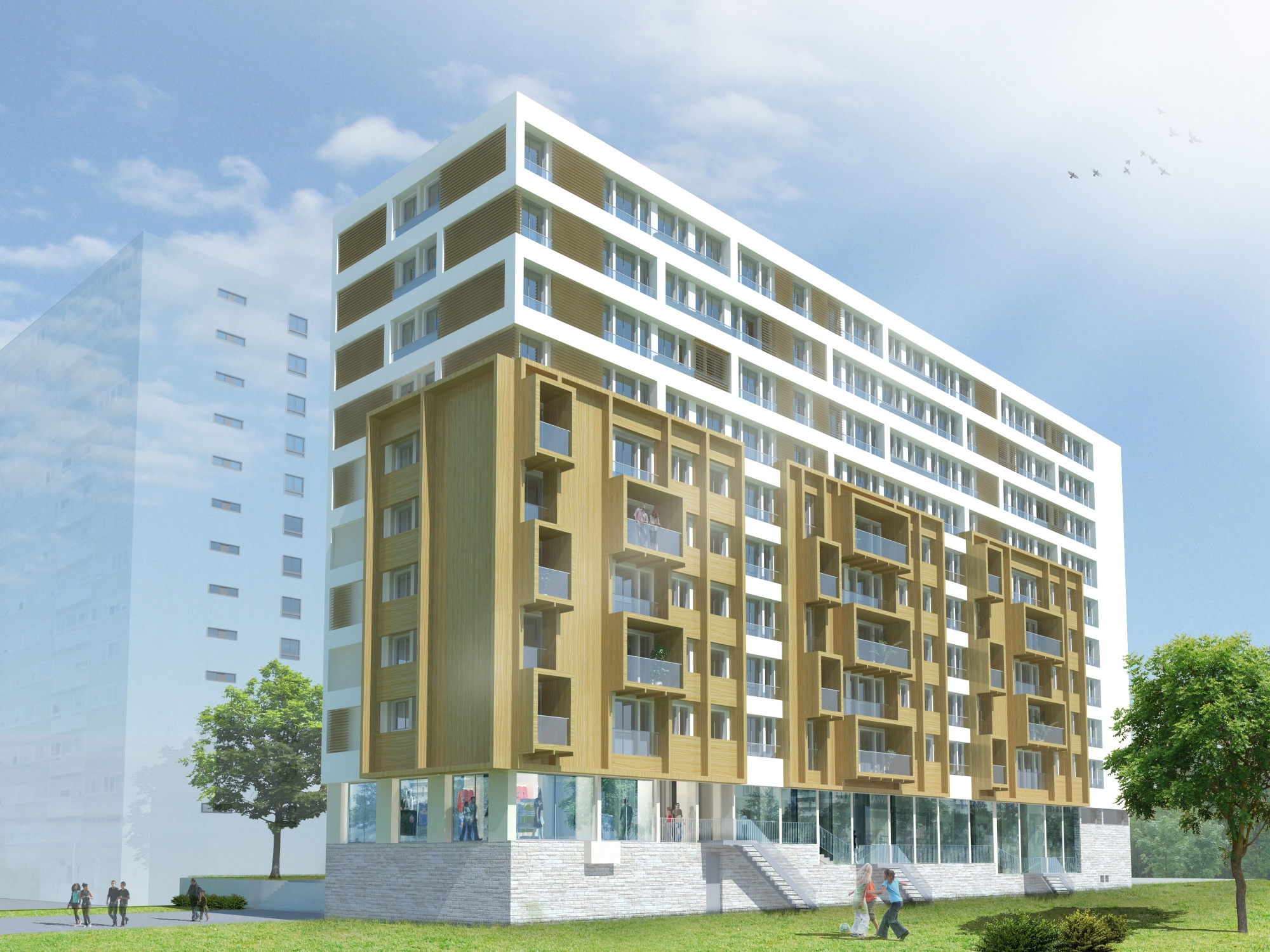 Cette nouvelle décomposition verticale permet de créer une image valorisante du bâti existant sans entrainer d’interventions sur la structure porteuse des bâtiments. Elle permet également la diminution de l’impact visuel des bâtiment en les détachant du sol tout en favorisant les différents niveaux de logements.