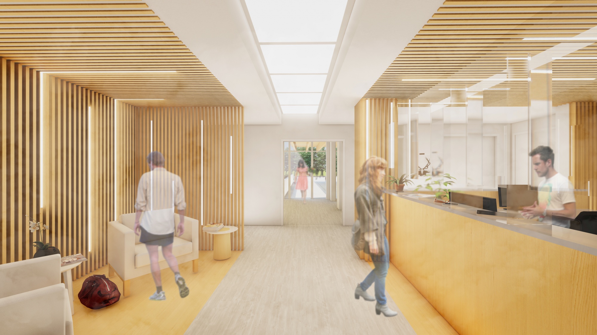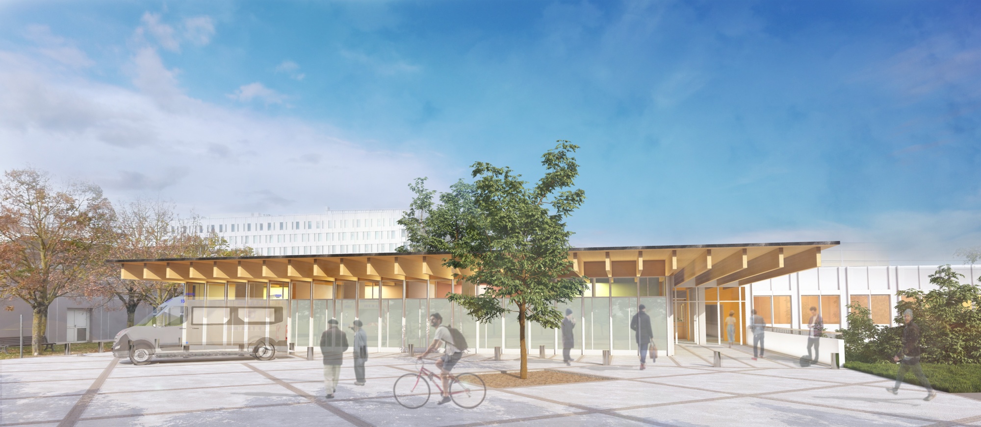 La programmation est un complément de l’activité usuelle. La création d’une nouvelle façade d’entrée valorise l’architecture de la construction existante et invite les patients à accéder dans ce service via une passerelle qui conduit directement vers le nouvel accueil.